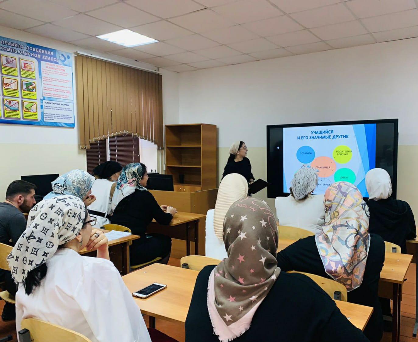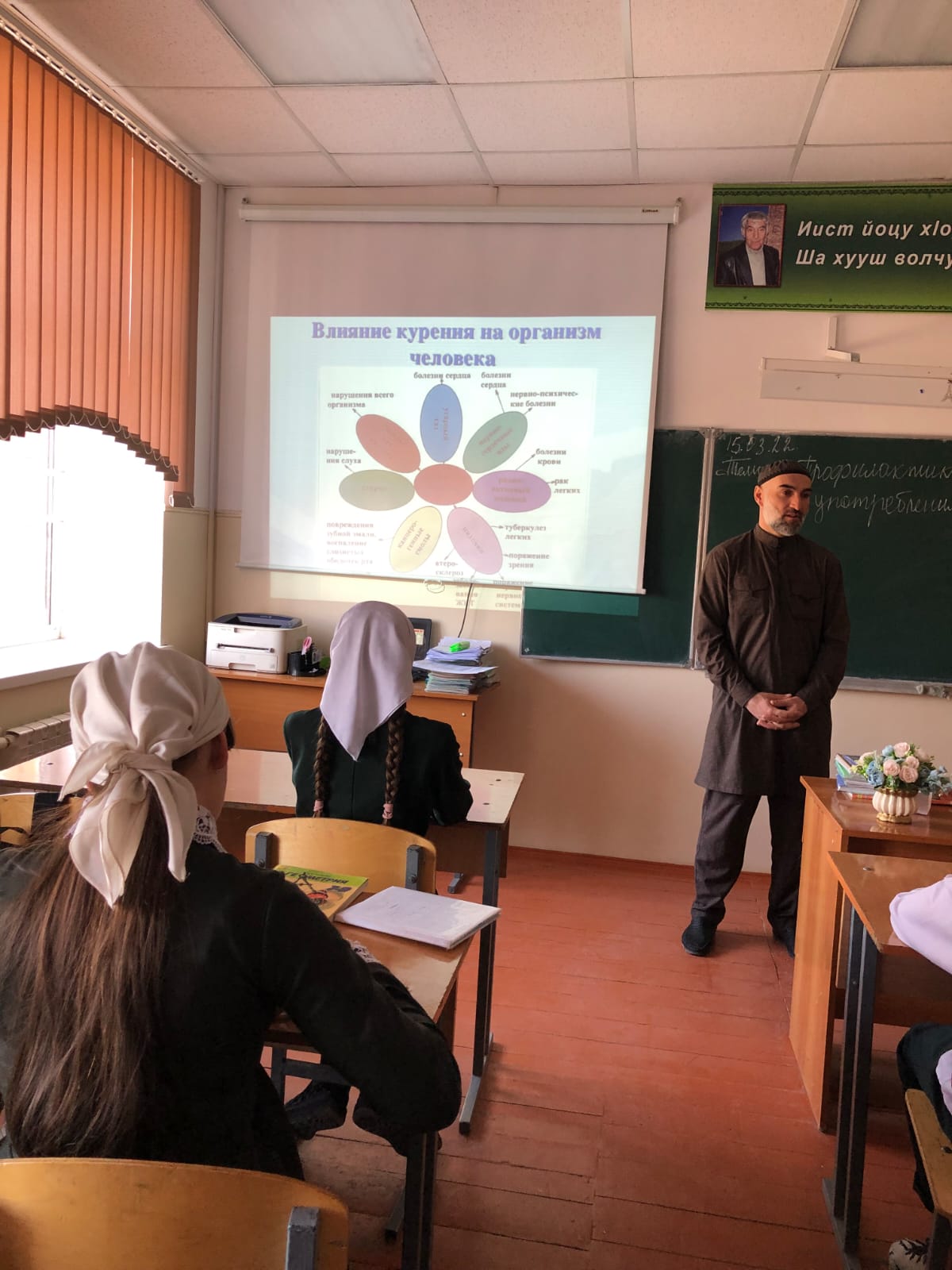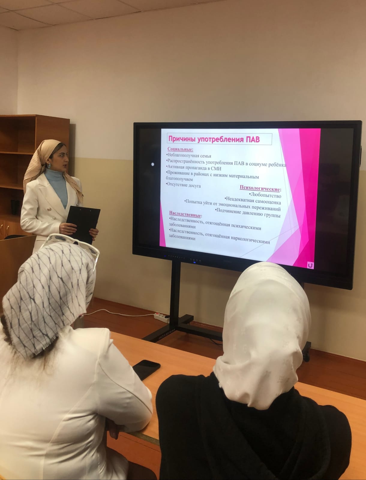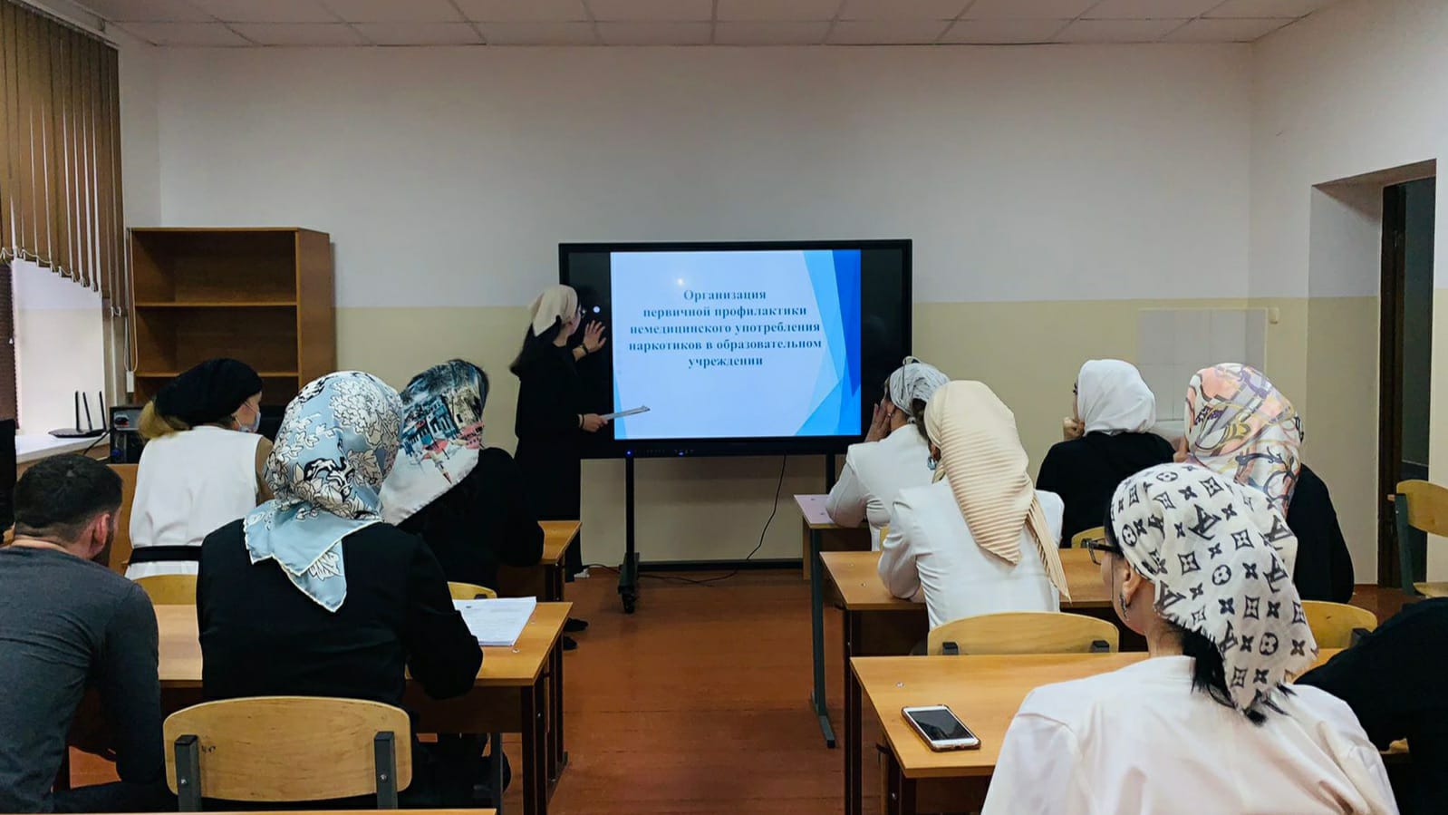 19 марта Зам. директора по ВР Исаева М.Б. также провела семинар для педагогов на тему «Профилактика употребления табака, алкоголя и ПАВ». Исаева М.Б. ознакомила педагогов с понятием «психоактивные вещества» их классификацией и основными причинами употребления. Кроме того, педагоги обсудили задачи и модели профилактической работы по предупреждению употребления психоактивных веществ обучающимися образовательного учреждения.