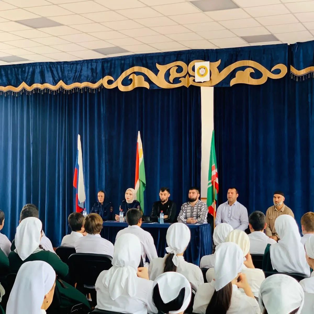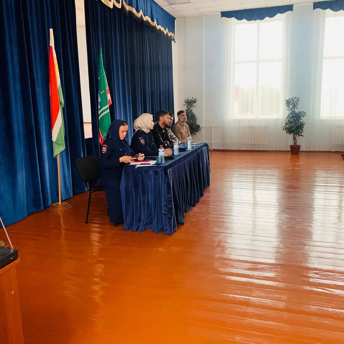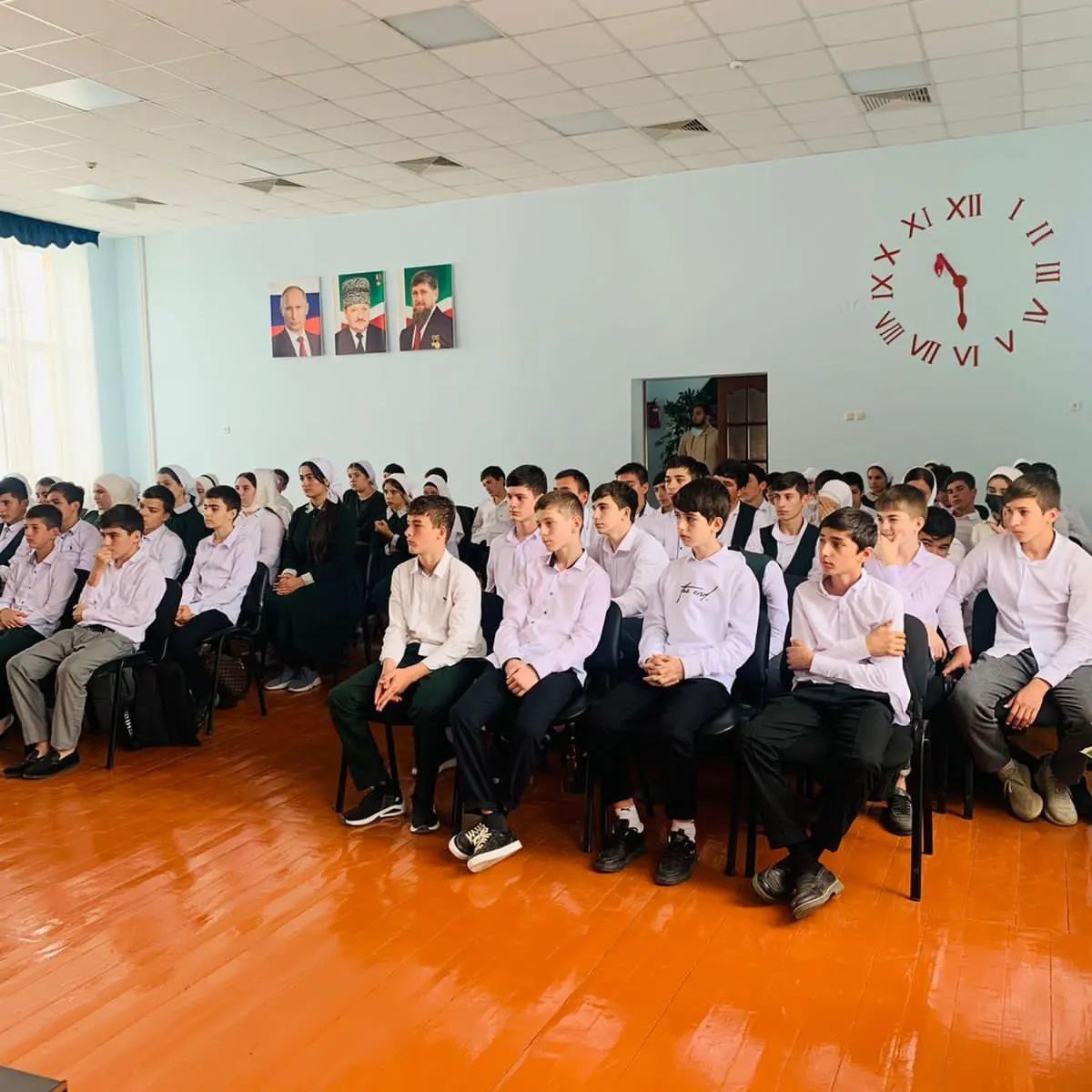 14.09.202214.09.2022 состоялась встреча представителей ПДН Ахматовского района совместно с советником директора школы по вопросам воспитания Алманом Сайдиевичем Султановым с обучающимися нашей школы. Гости провели профилактическую беседу по антинаркотической и антитеррористической защищенности. Участникам беседы рассказали как защитить себя и своих близких в реалиях современного мира.