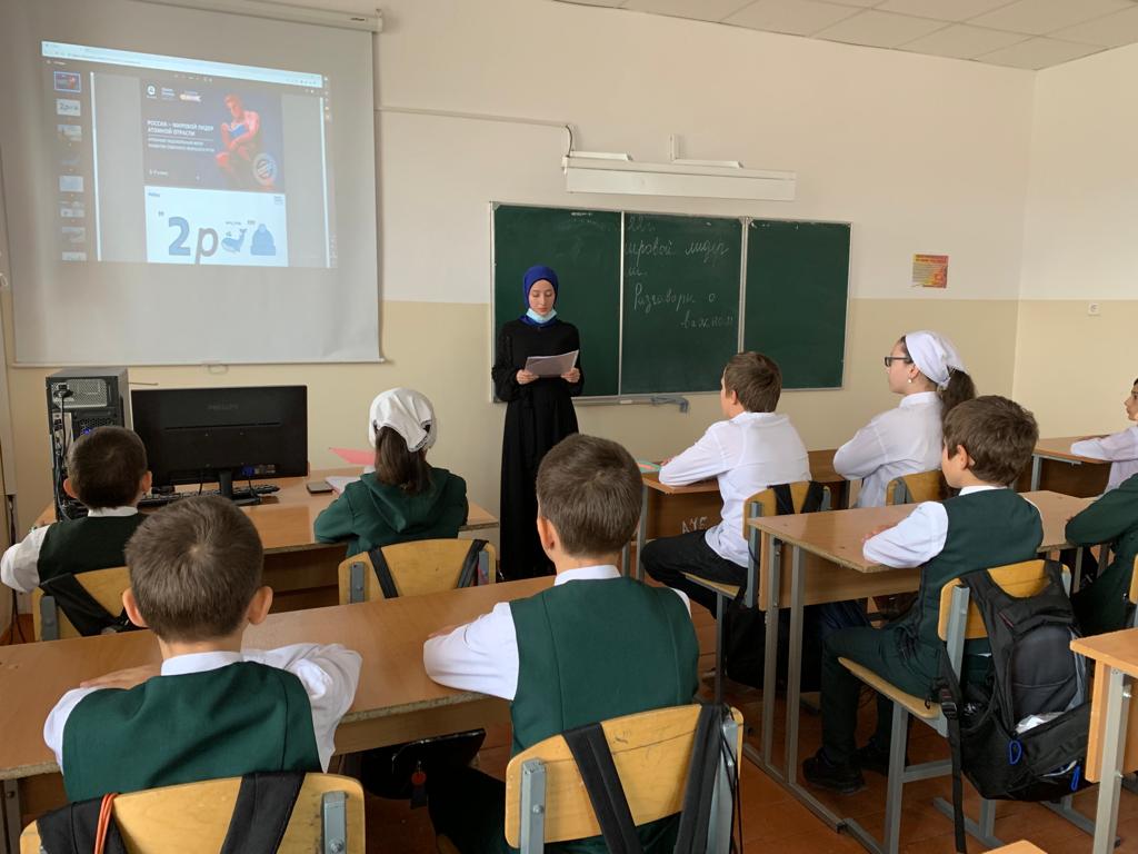 24.10.2022Последняя учебная неделя первой четверти началась с занятия по курсу внеурочной деятельности «Разговоры о важном». Тема занятия: «РОССИЯ - МИРОВОЙ ЛИДЕР АТОМНОЙ ОТРАСЛИ». Ребята узнали интересные факты об Арктике, об уникальной транспортной артерии - Северном морском пути, а также о важности развития атомных технологий в России.