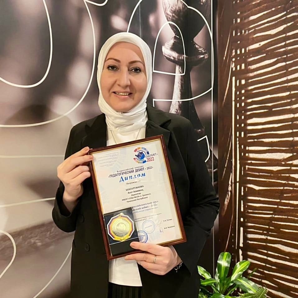 В Москве состоялся финал Всероссийского конкурса «Педагогический дебют - 2022».В нем приняли участие более 150 педагогов из 70 субъектов Российской Федерации, в том числе из Донецкой и Луганской народных республик.Конкурс проводился в два этапа: заочный и очный.По результатам всех конкурсных испытаний Бексултанова Асет Алиевна, директор МБОУ «СОШ 19» г.Грозного стала лауреатом Всероссийского конкурса «Педагогический дебют - 2022» в номинации «Молодые управленцы».Конкурс - хорошая возможность профессионального роста, синергии и расширения географии сетевого взаимодействия и сотрудничества.