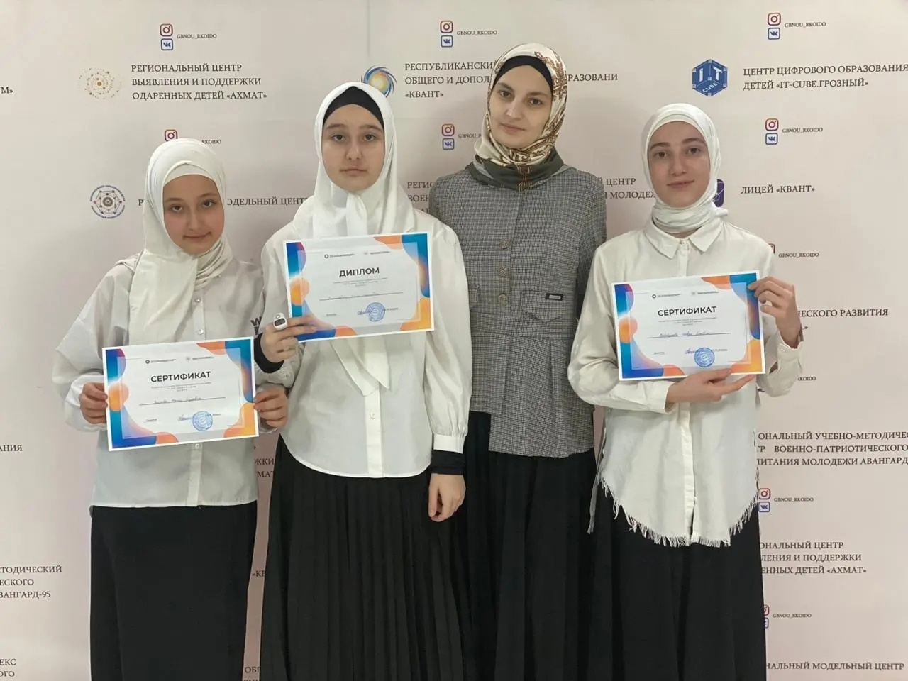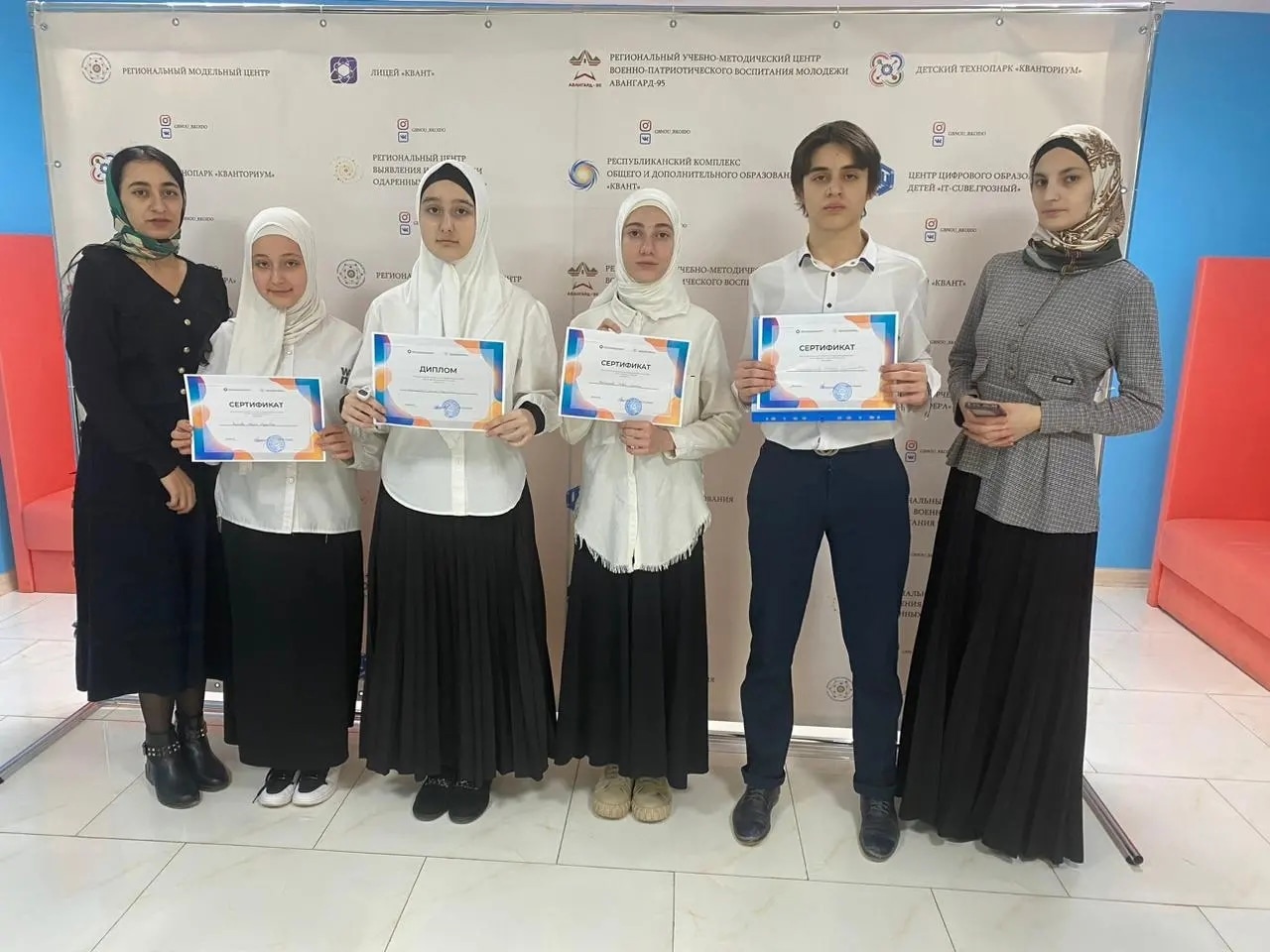 В рамках реализации мероприятий федерального проекта «Успех каждого ребенка» национального проекта «Образование» и в целях выявления и поддержки одаренных детей в Чеченской Республике Республиканский комплекс общего и дополнительного образования «Квант» 22.12.2022 г. провел конкурс научно-исследовательских работ. Он проходил по трем направлениям: химия, биология, физика. Конкурс проходил в два этапа, первый отборочный - заочно, второй финальный - очно.От нашей школы было заявлено 4 проекта, два в секцию биология, и по одному проекту по направлениям химия и физика. Все заявленные проекты прошли во второй этап.Обучающиеся 8 «А» класса Хажиабдуллаев Мансур, Хабибулаева Шовда и Закриева Макка получили сертификаты участников.