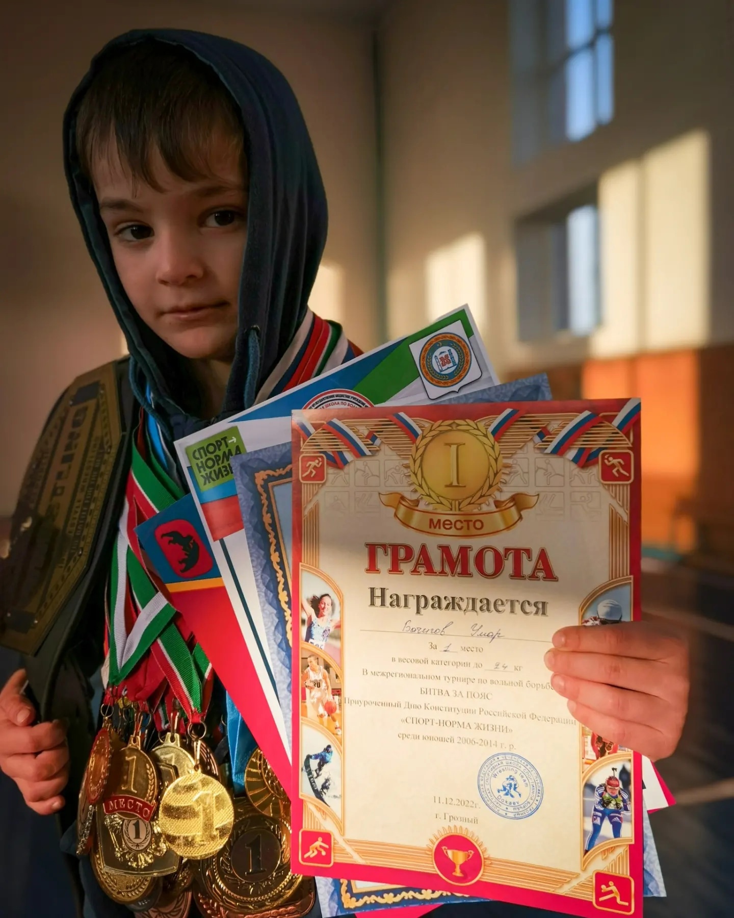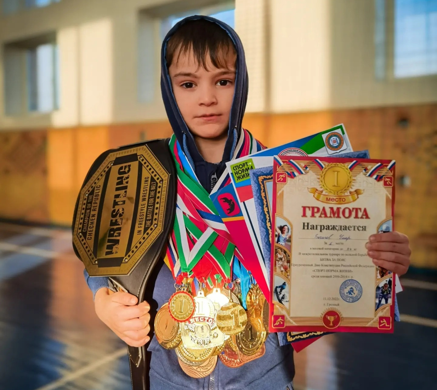 27.12.2022Спешим поздравить с очередной победой нашего юного чемпиона! Обучающийся 2б класса нашей школы Бачигов Умар одержал безоговорочную победу заняв 1 место в весовой категории до 24 киллограмов среди юношей 2006 - 2014 года рождения на межрегиональном турнире по вольной борьбе "БИТВА ЗА ПОЯС" , приуроченной ко Дню Конституции Российской Федерации. Турнир проходил 11.12.2022 года в городе Грозный.