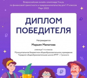 05.04.2023Начальная школа приняла активное участие в финансовой олимпиаде на электронном образовательном ресурсе "Учи.ру". Олимпиады по финансовой грамотности от «Учи.ру» знакомят учеников с базовыми понятиями предпринимательства. Сложная информация усваивается лучше благодаря подаче материала в игровой форме. У ребенка с раннего детства развиваются навыки, которые так пригодятся в самостоятельной жизни: планирование бюджета, лидерские задатки, критическое мышление. дала тIаьхье беркате йойла!