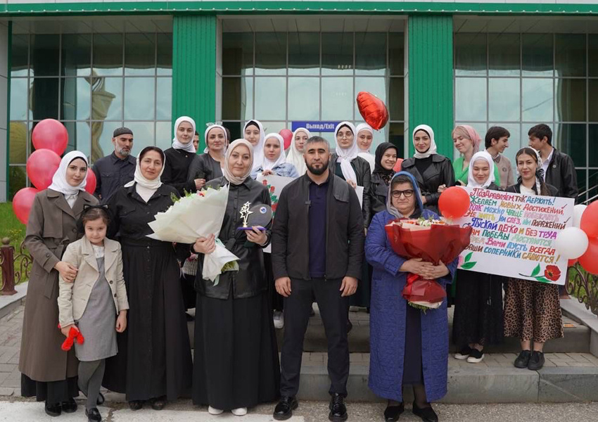 В Международном аэропорту Грозный (Северный) им. Первого Президента Чеченской Республики, Героя России Ахмата-Хаджи Кадырова их торжественно во главе с начальником Департамента образования Мэрии Грозного Зелимханом Ахматовым встретили представители Министерства образования и науки ЧР, коллеги, директора образовательных организаций города, а также дети, изъявившие желание поздравить их.