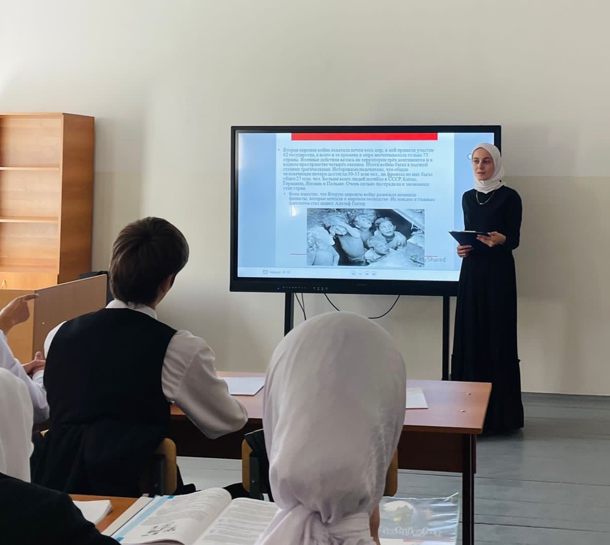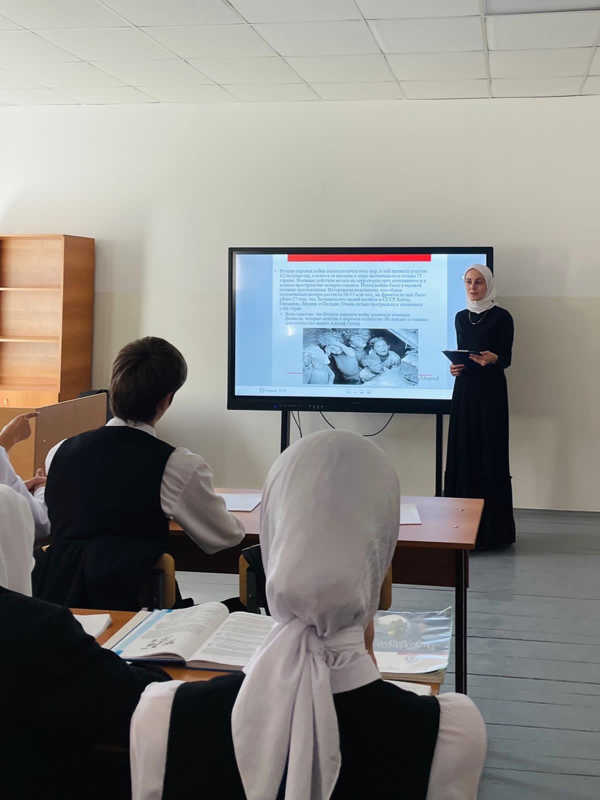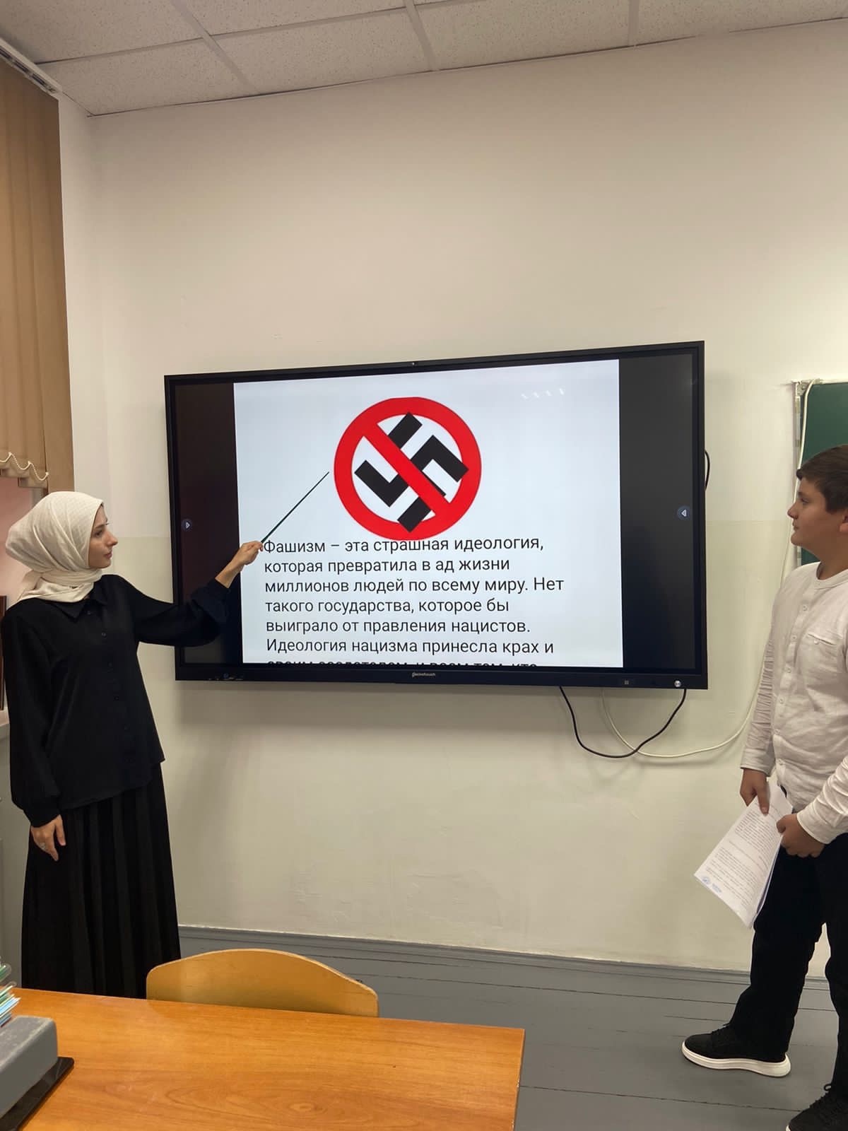 11.09.2023Сегодня в МБОУ "СОШ №19" г. Грозного провели "Уроки истории и мира: Память и уважение к жертвам фашизма". Целью было познакомить учащихся с историческими событиями, связанными с жертвами фашизма, и подчеркнуть важность сохранения памяти о них. Этот урок напомнил обучающимся о важности мира, толерантности и уважения к человеческой жизни. Было подчеркнуто, что память о жертвах фашизма - это наше обязательство сохранить мир и никогда не забыть уроки истории. Также была выделена важность уважения к разным культурам и национальностям с целью предотвратить повторение подобных событий в будущем.