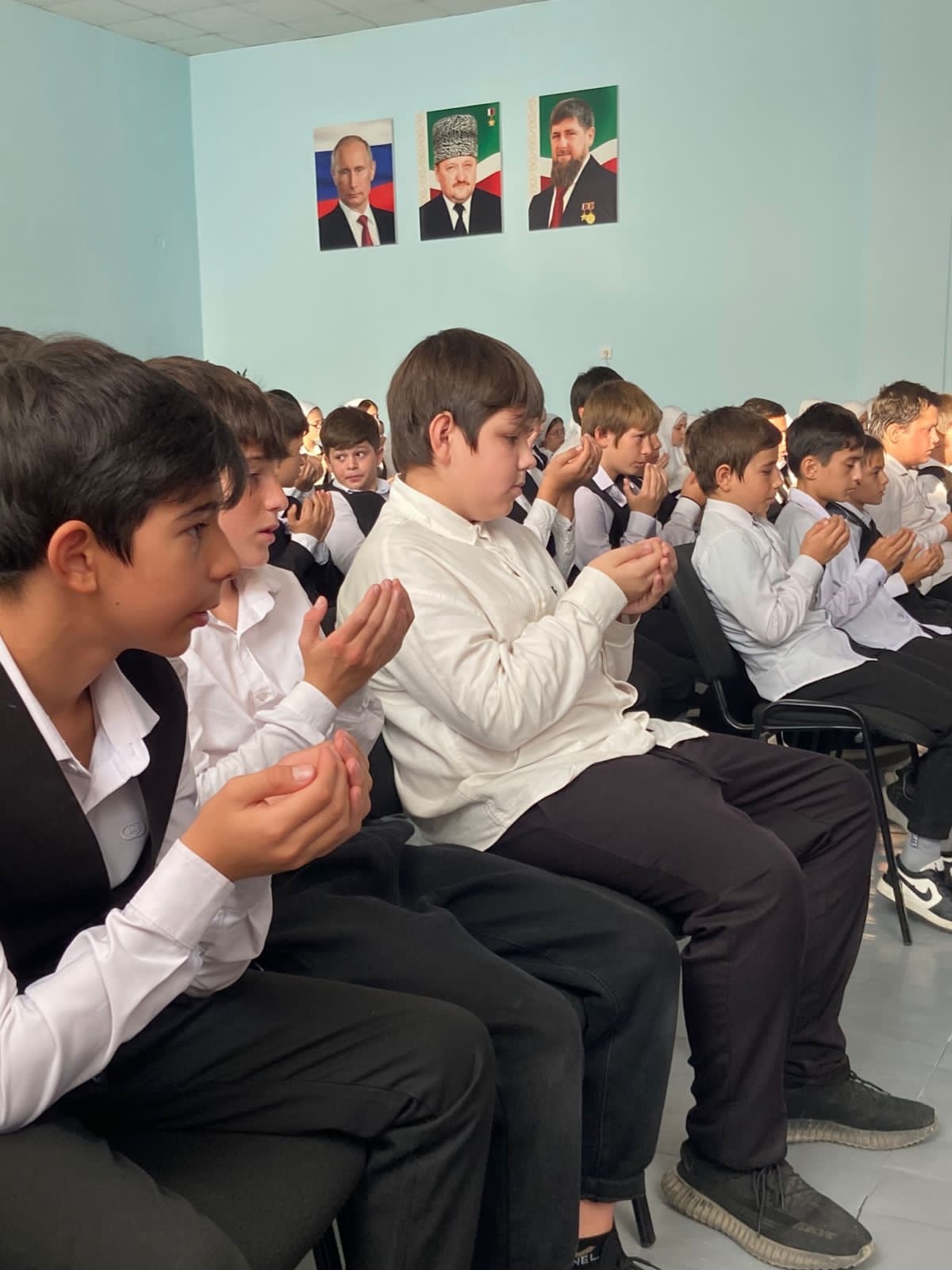 26.10.2023В МБОУ «СОШ№19» г. Грозного обучающиеся вместе с педагогом по духовно-нравственному воспитанию прочитали коллективное дуа, прося у Всевышнего Аллаха защитить народ Палестины от несправедливости и притеснений. Это трогательное и единодушное событие показало наше взаимопонимание и поддержку религиозных традиций. Мы стремимся к солидарности и единству, и верим в возможность привнести мир и согласие на Землю.