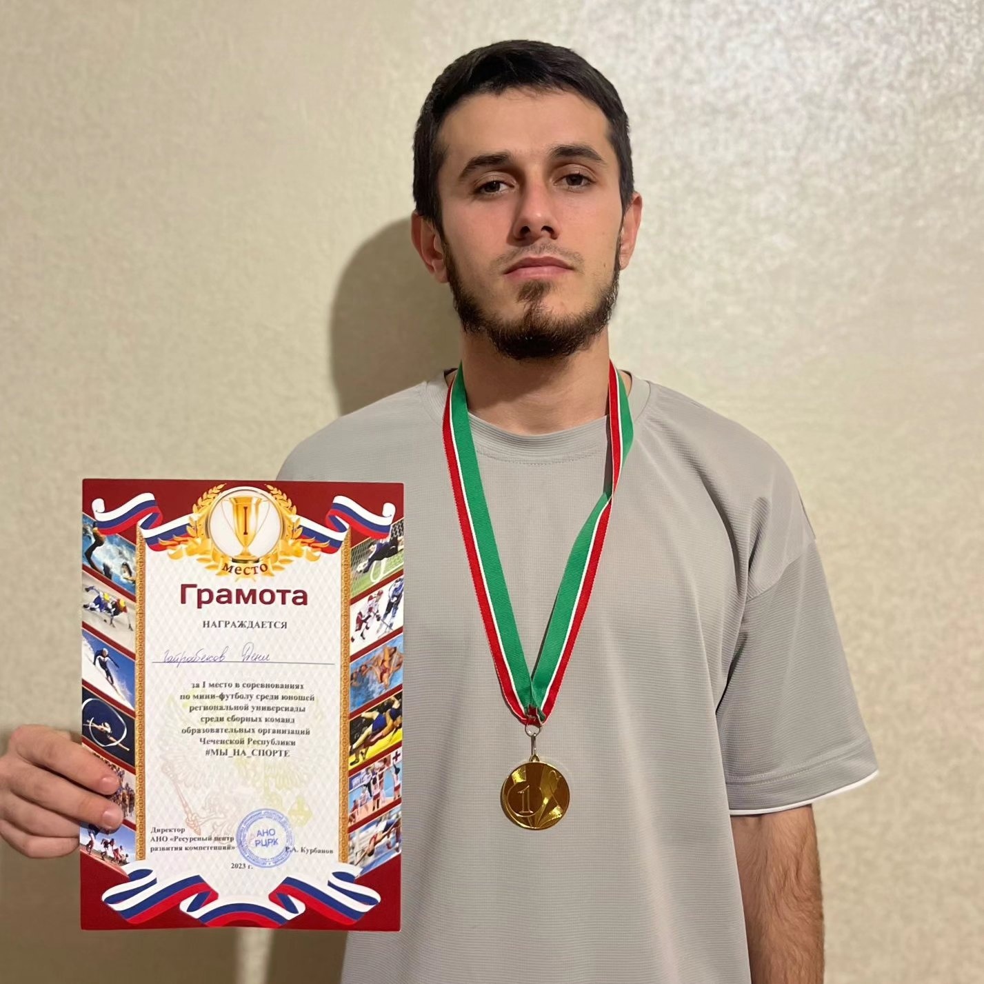 29.11.2023Учитель физической культуры МБОУ «СОШ №19» г. Грозного Дени Казбекович Гайрабеков, занял первое место в соревнованиях по мини-футболу среди юношей региональной универсиады среди сборных команд образовательных организаций Чеченской Республики!