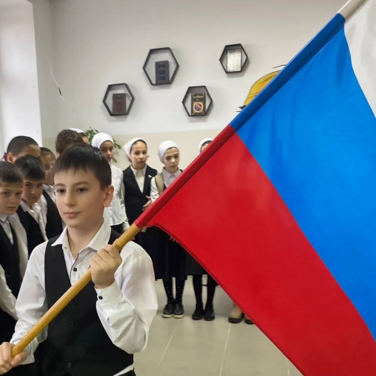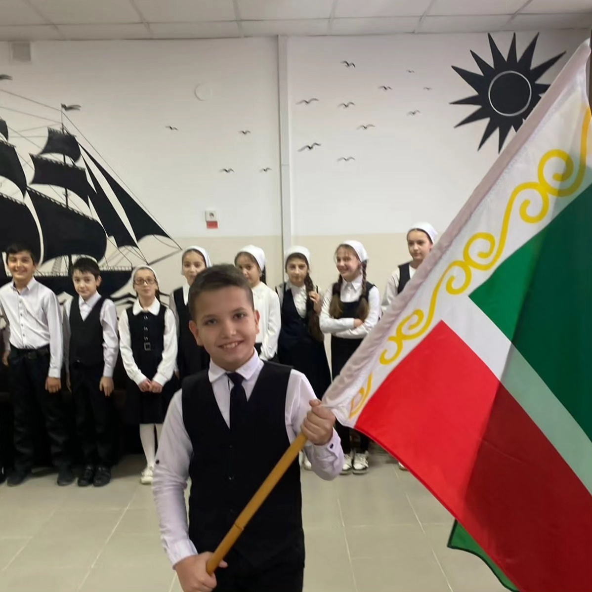 11.12.2023Учебная неделя началась с традиционной линейки, поднятия флагов и исполнения гимнов Российской Федерации и Чеченской республики.Эта традиция стала неотъемлемой частью школьной жизни, символизируя единство и гордость за свою страну.Поднятие флагов и исполнение гимнов также напоминает обучающимся о важности патриотизма и уважения к своей стране. Это момент, когда все становятся едиными и гордятся своей принадлежностью к определенной нации.Таким образом, начало учебной недели с этой традиции создает важный символический момент, который объединяет учеников и напоминает им о значимости их отношений к своей стране.