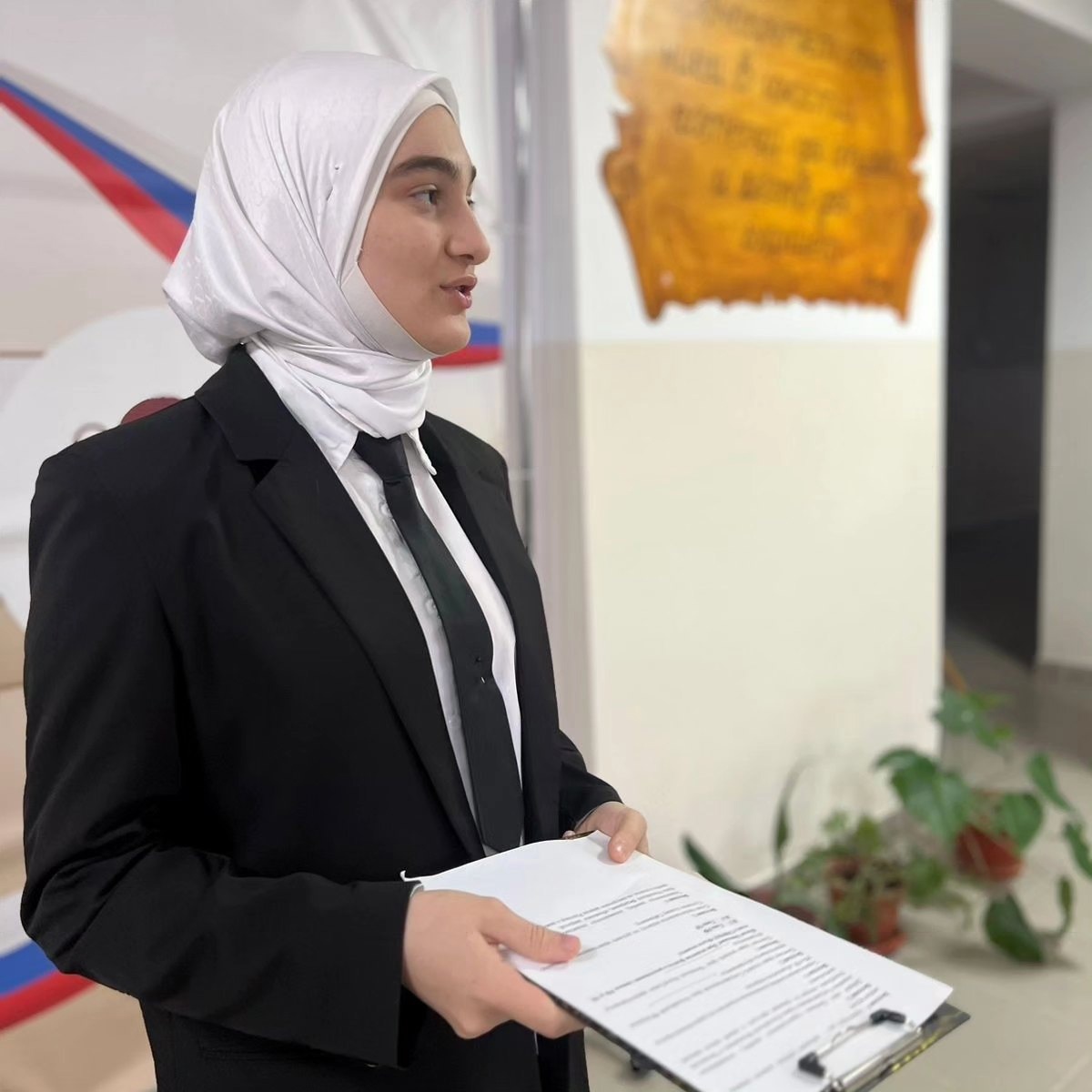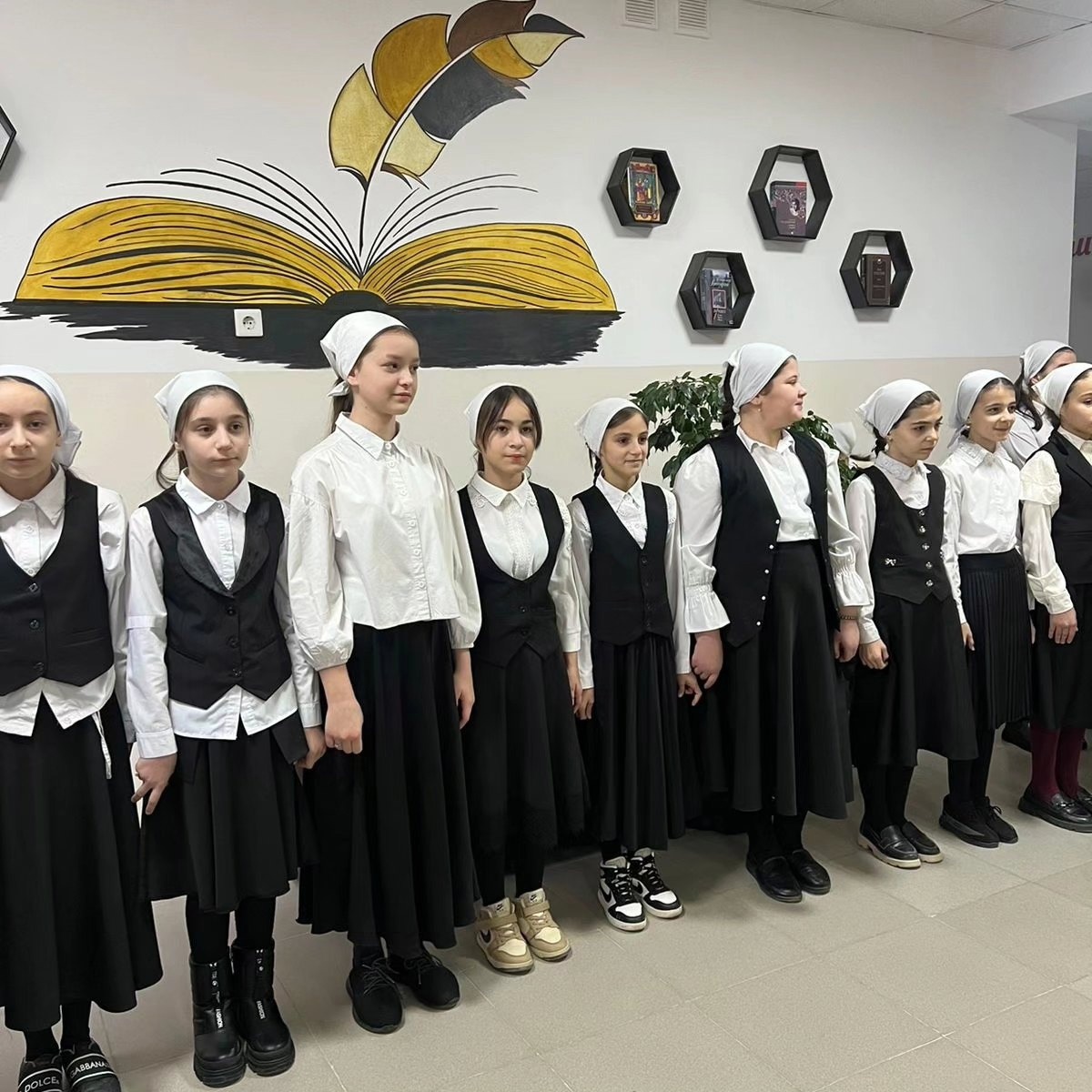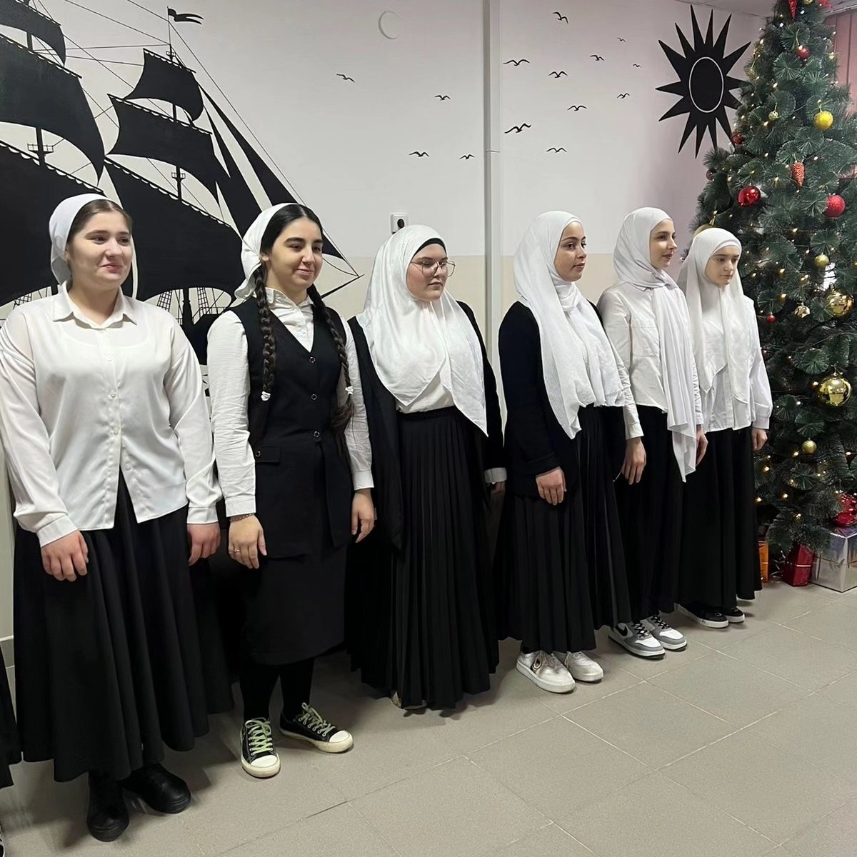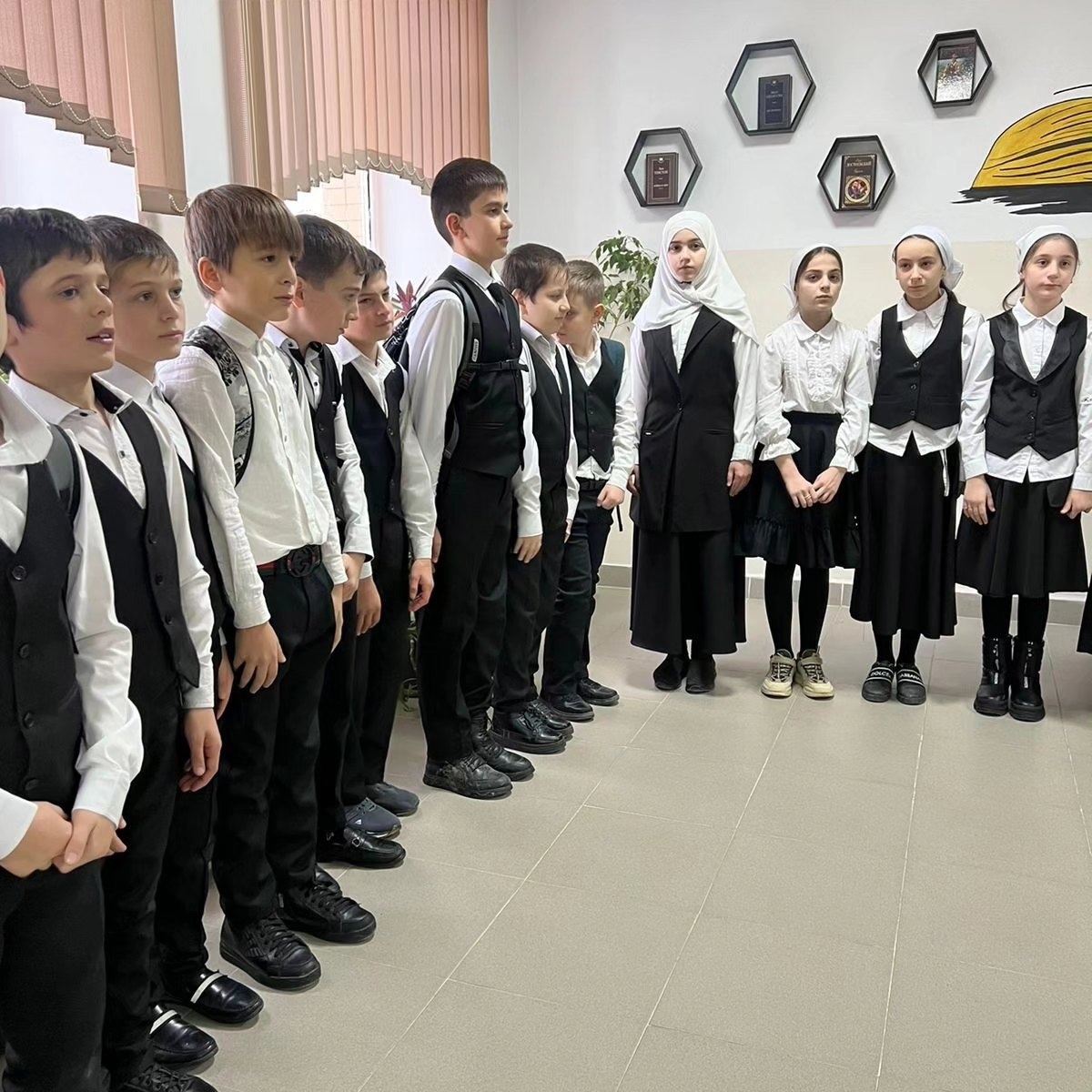 25.12.2023Церемония началась с торжественного выноса флагов России и Чеченской Республики. Обучающиеся и учителя в полном молчании и с особым трепетом проводили флаги к месту, отведенному для проведения церемонии. Затем последовало исполнение гимнов РФ и ЧР, во время которого все присутствующие стояли внимательно слушали и восхищенно наблюдали за происходящим.