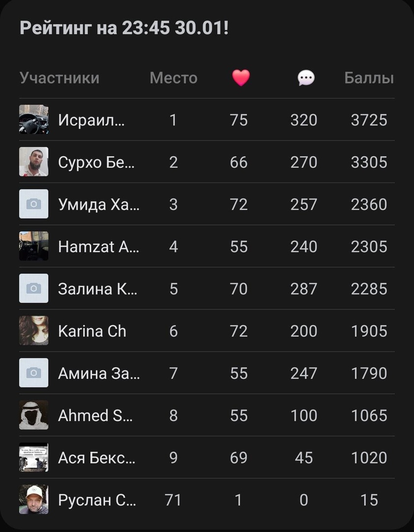 31.01.2024Дорогие друзья!!!Спешим поделиться с Вами замечательной новостью! Только что были подведены итоги январского этапа конкурса активности в школьных социальных сетях. По итогам автоматизированного подсчета рейтинга за текущий месяц безоговорочную победу одержал обучающийся 8"В" класса нашей школы Исраил Махмудов !!! Желаем ему еще больших побед и достижений.По сложившейся традиции победитель получает грамоту, а так же ценный приз!!!