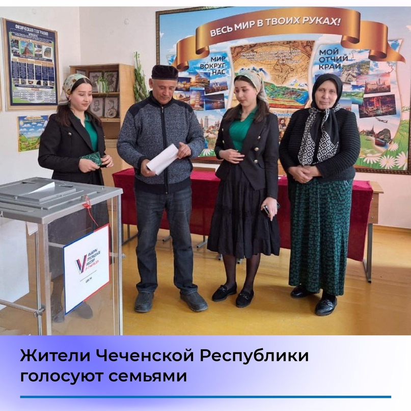 ЖИТЕЛИ ЧЕЧЕНСКОЙ РЕСПУБЛИКИ ГОЛОСУЮТ СЕМЬЯМИ НА ВЫБОРАХ ПРЕЗИДЕНТА РОССИИ