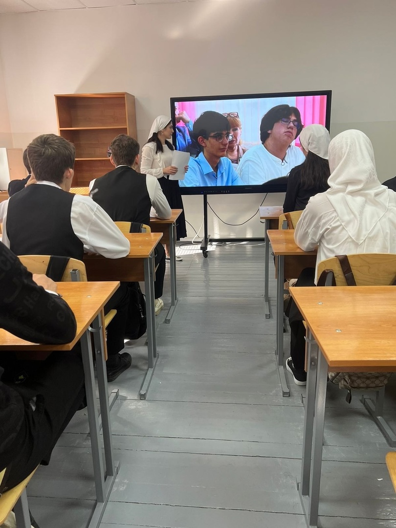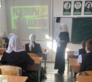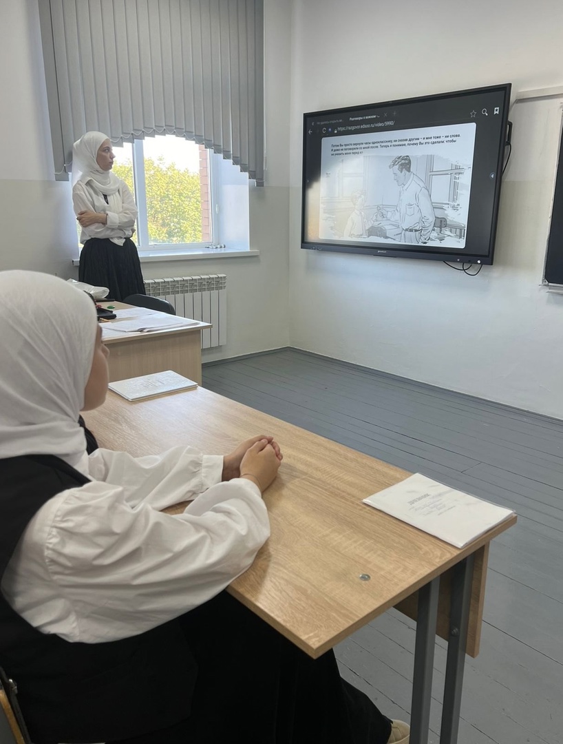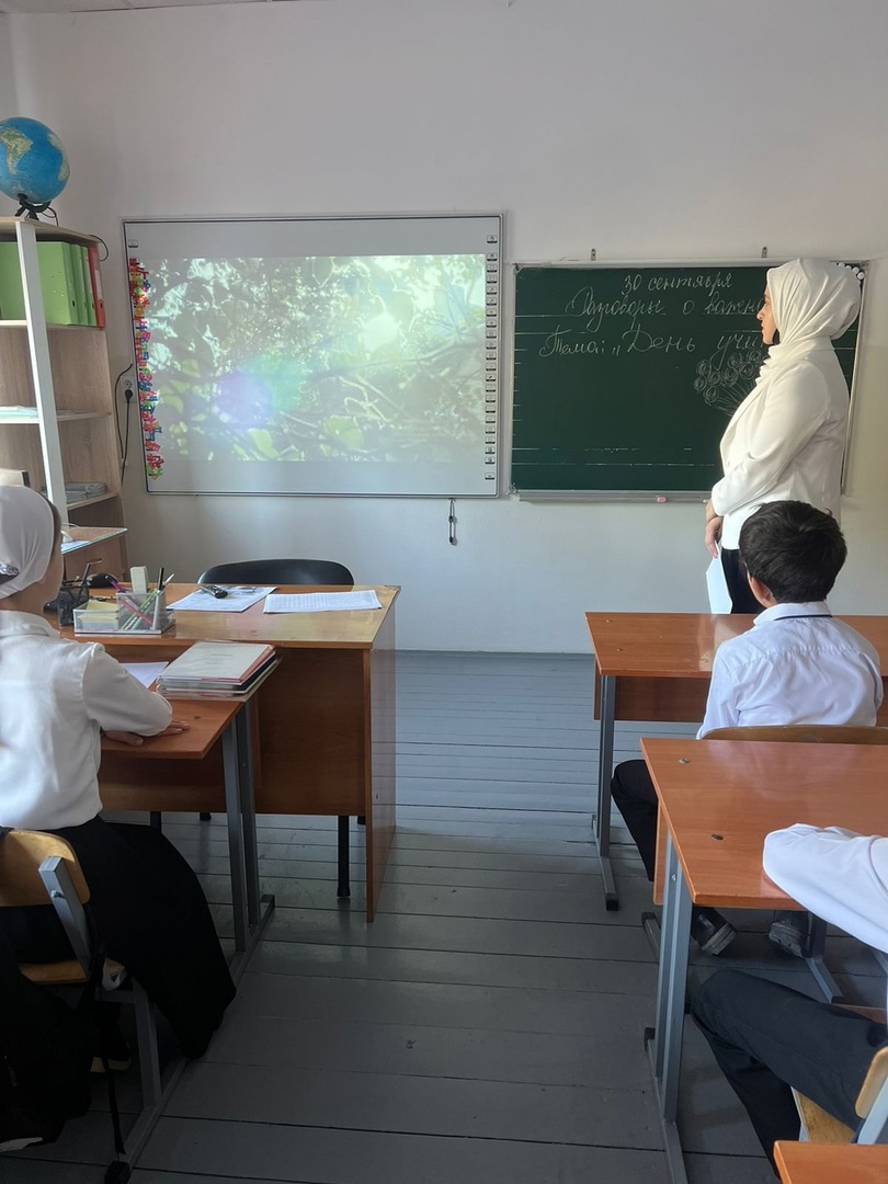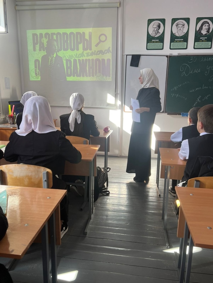 В МБОУ «СОШ №19» г. Грозного новая учебная неделя началась с внеурочных занятий «Разговоры о важном» на тему «День учителя»