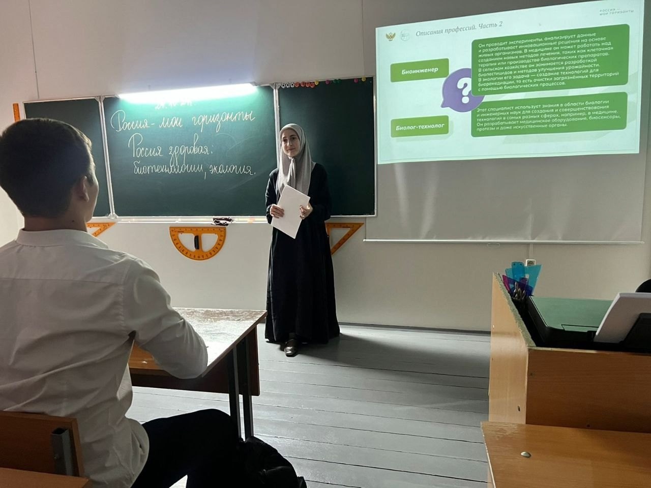 01.11.2024Курс "Россия – мои горизонты" был инициирован Министерством просвещения России в сентябре 2023 года и теперь проводится во всех школах страны.7 сентября 2023 года состоялось первый урок для учеников 6-11 классов. Этот курс успешно реализуется второй год по всей стране, и сейчас самое время подвести промежуточные итоги. В этом тексте мы собрали разнообразные мнения учителей и школьников о курсе, обсудив его реальную пользу, насколько занятия "прижились" в школе и как их воспринимают учителя и ученики.Напомним, что занятия проводятся каждую неделю по четвергам и направлены на ознакомление школьников с различными профессиональными направлениями и возможностями на рынке труда. Авторы программы — опытные специалисты по профориентации подростков, включая кандидатов педагогических наук, экспертов из разных отраслей экономики, психологов и методистов. Они объединили свой многолетний опыт, чтобы разработать методические материалы, адаптированные под психологические особенности и интересы разных возрастных групп.Мииева Марха Аюбовна, классный руководитель 7 "В" класса МБОУ "СОШ №19" г. Грозного, считает, что курс "Россия – мои горизонты" является важным и нужным проектом. Он помогает нынешним школьникам строить будущее, выбирать необходимые знания и кратчайший путь к выбранной профессии, а также укрепляет уверенность в своём выборе и собственных силах.Дабажаева Залина Вахаевна, классный руководитель 8 "Б" класса МБОУ "СОШ №19" г. Грозного, выделила несколько положительных аспектов курса: занятия по профориентации способствуют раскрытию талантов наших школьников и вдохновляют их задуматься о выборе будущей профессии. Введение таких занятий своевременно и правильно. Важно помочь учащимся осознать, какие навыки, интересы и качества требуются для каждой профессии, и как они могут применять свои способности. Второе положительное качество курса – наличие готовых методических материалов на платформе "Билет в будущее".Чудиева Карина Магомедовна, заместитель директора по УР МБОУ "СОШ №19" г. Грозного отметила: с 1 сентября 2023 года я веду курс внеурочной деятельности "Россия – мои горизонты". Убедительные видеоролики о России и данных о российской экономике позволяют ученикам в более широком масштабе увидеть возможности для самореализации. Интерактивные игры "Инженеры в разных отраслях" и "Реальность и будущее" помогают осознать важность этих профессий. Профориентационный курс "Россия – мои горизонты" богат на содержательные и познавательные материалы.