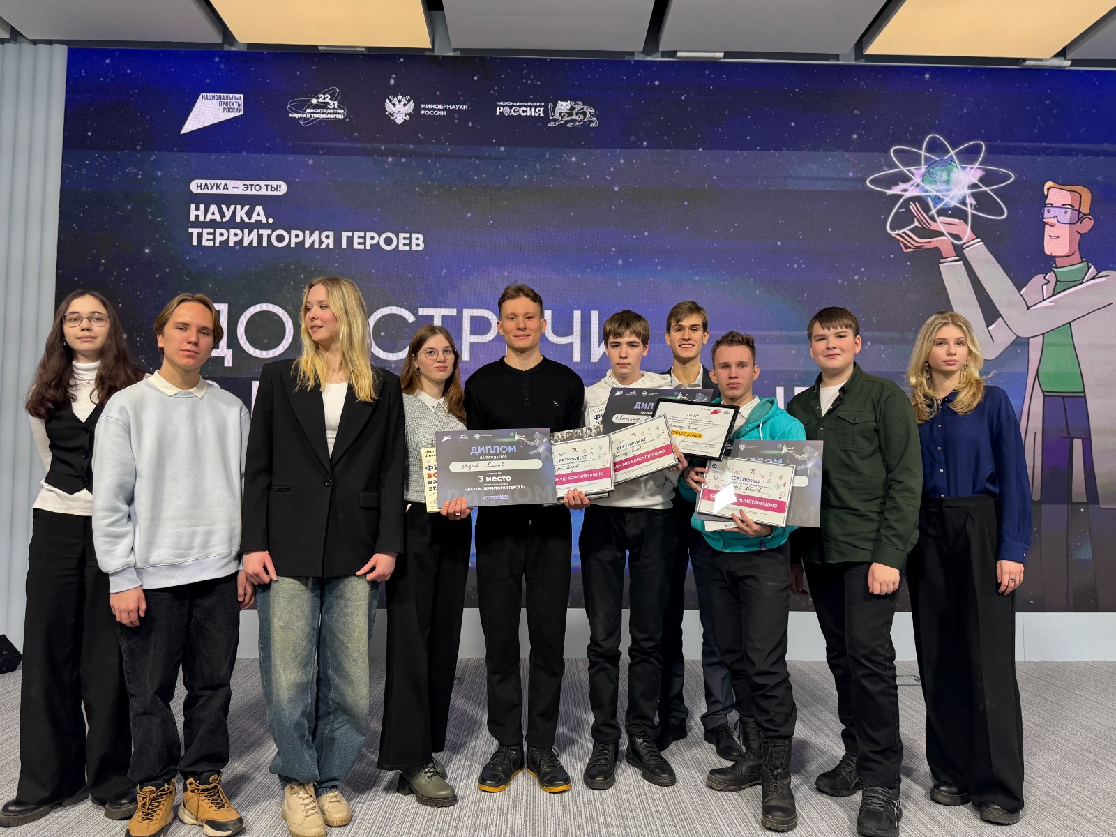 «Профессия учёного в России становится всё более востребованной и престижной. Наши учёные – настоящие супергерои! Мы на пятом месте в мире по количеству людей, занимающихся исследованиями и разработками. Почти каждый второй учёный в России – моложе 40 лет. Конкурс “Наука. Территория героев„ тоже набирает популярность. Уже более 90 тысяч школьников и студентов со всей страны стали его участниками. Вовлекая десятки тысяч юных исследователей в научную сферу, мы решаем одну из главных задач Десятилетия науки и технологий, объявленного Президентом Владимиром Путиным», – отметил Дмитрий Чернышенко.