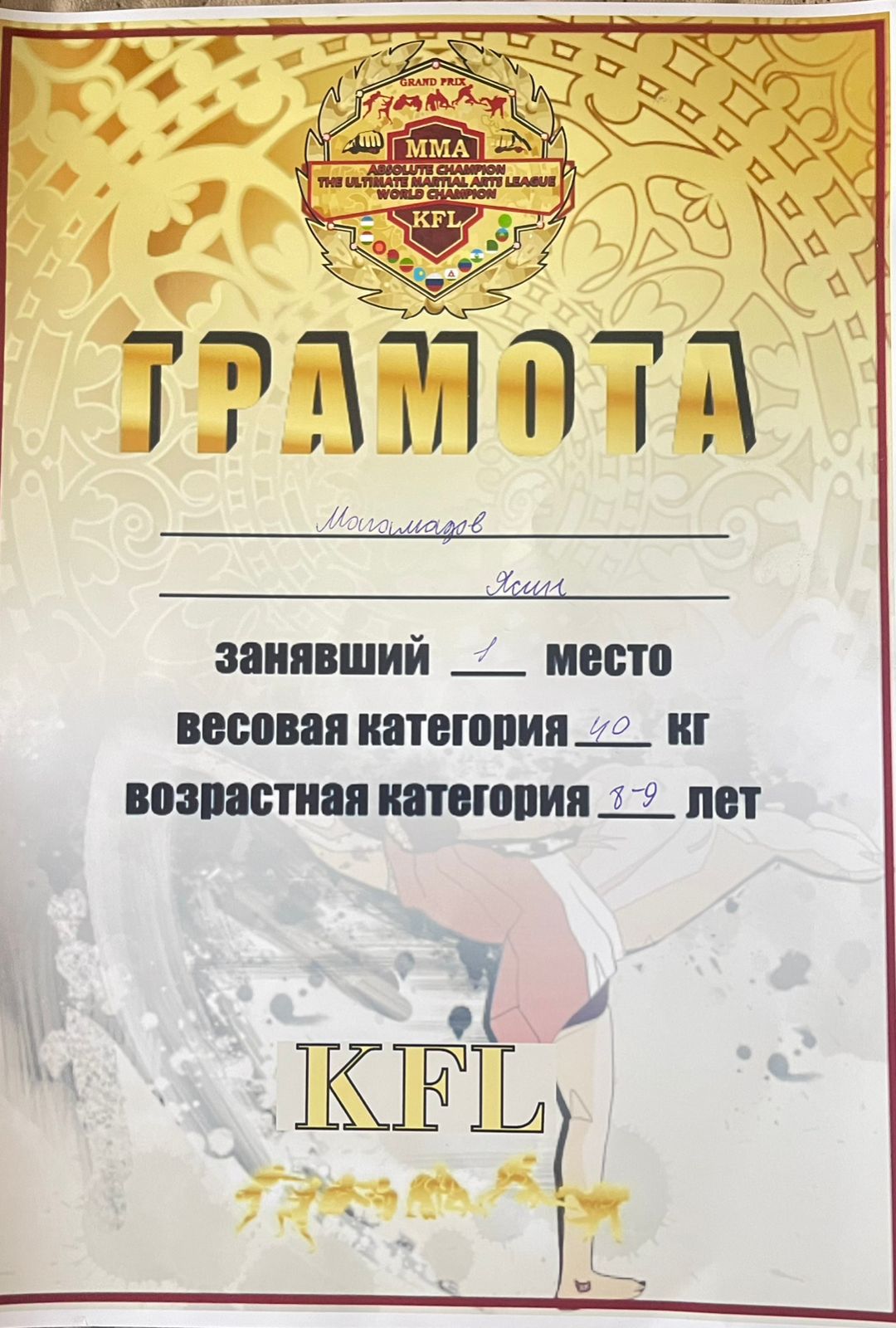 Ученик школы №19 г. Грозного стал абсолютным победителем чемпионата мира по смешанным единоборствам.