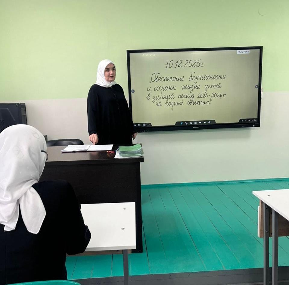 05.12.2025В рамках исполнения плана мероприятий по обеспечению безопасности и охране жизни людей на водных объектах г.Грозного в осенне - зимний период 2025/2026 годов в нашей школе проведено совещание для классных руководителей 1–11 классов Основной темой совещания стало обеспечение безопасности и охраны жизни обучающихся в зимний период на водных объектах и алгоритм профилактической работы с детьми и родителями.
